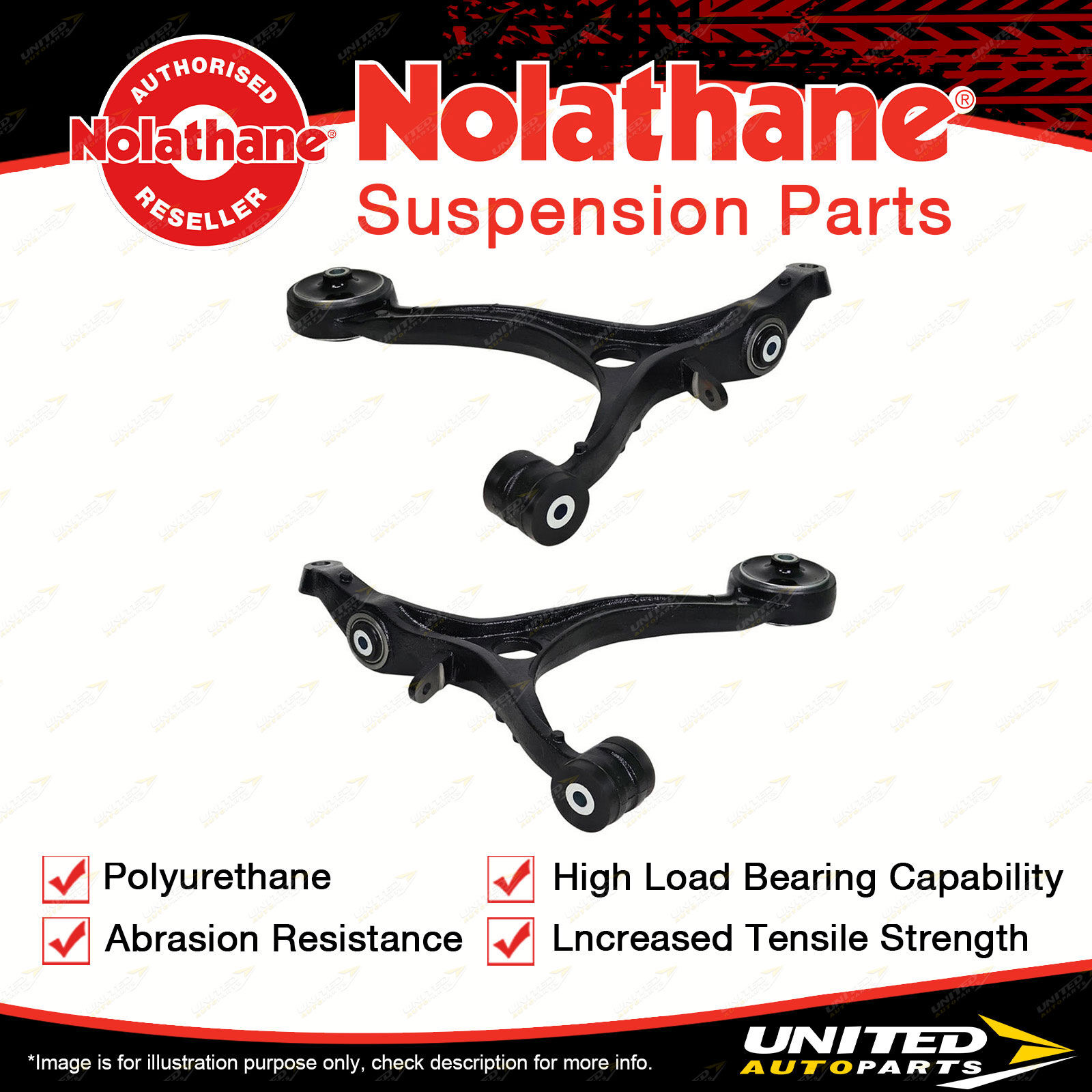 Contents : Nolathane Control Arm Lower - Arm Assembly Position : Front Warranty : Lifetime Kit Contents : 2 Arms |