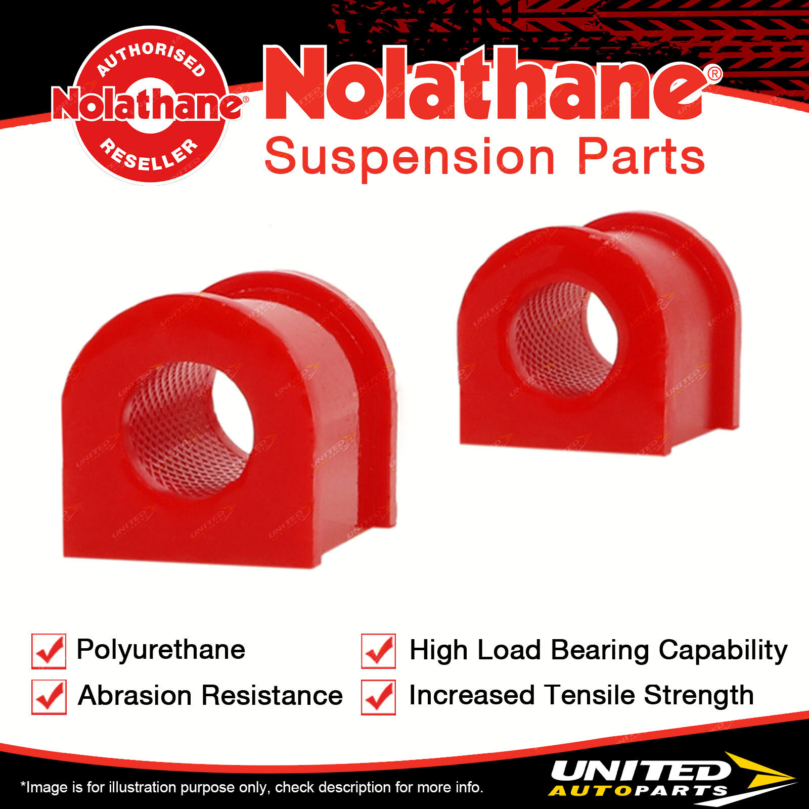 Nolathane bushing kits are covered for their lifetime. Nolathane complete control arms (excl. 45946L & 45946R), trailing arms, panhard rods, strut rods, lowering blocks, u bolts, camber bolts and sway bar links are covered by a 3 year/60,000km warranty from the date of their original installation. 45946L & 45946R are covered by a 12 month/20,000km warranty. | ![]() |