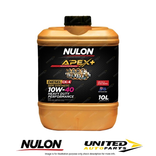 Nulon APEX+ 10W-40 Heavy Duty Performance engine oil has been developed with the latest world-class additive technology to provide unsurpassed heavy-duty performance and protection for vehicles in high-heat and high-load driving conditions.The advanced formulation offers ultimate high-temperature protection and shear stable performance over extended service intervals.