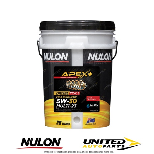 Nulon APEX+ MULTI-23 is a premium performance, extreme fuel-economy engine oil with optimum cold-start ability and outstanding performance reserves for modern passenger cars and light commercial diesel vehicles.The unique combination of ACEA C2 and ACEA C3 specifications offers an unrivalled range of approvals for European and Japanese vehicle manufacturers.