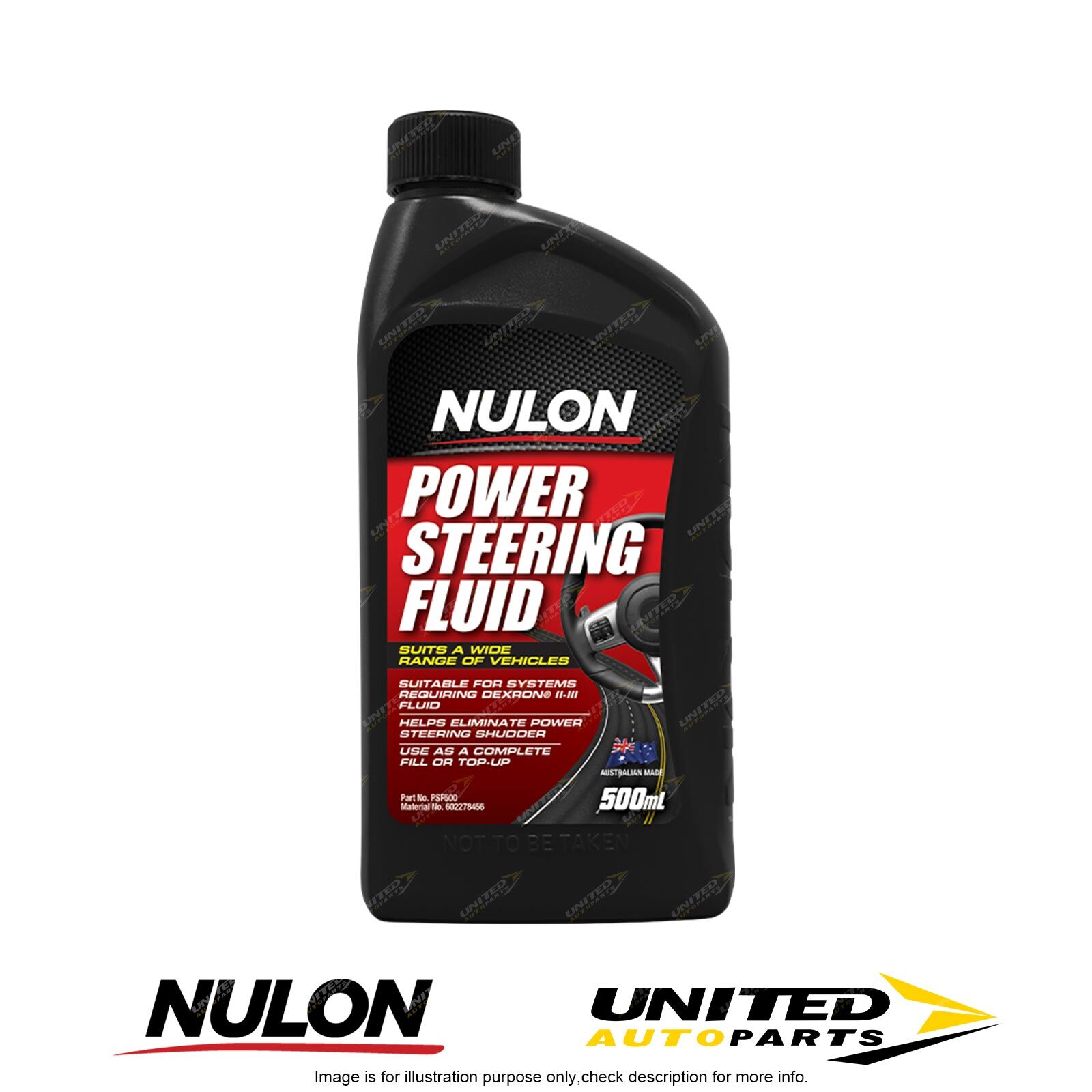 Nulon Power Steering Fluid (PSF) is a mineral based fluid that has been formulated to suit all power steering systems that require a Dexron® fluid. Nulon PSF contains enhanced anti-corrosion and anti wear additives to ensure optimum protection. It is an excellent everyday choice for Australian conditions.