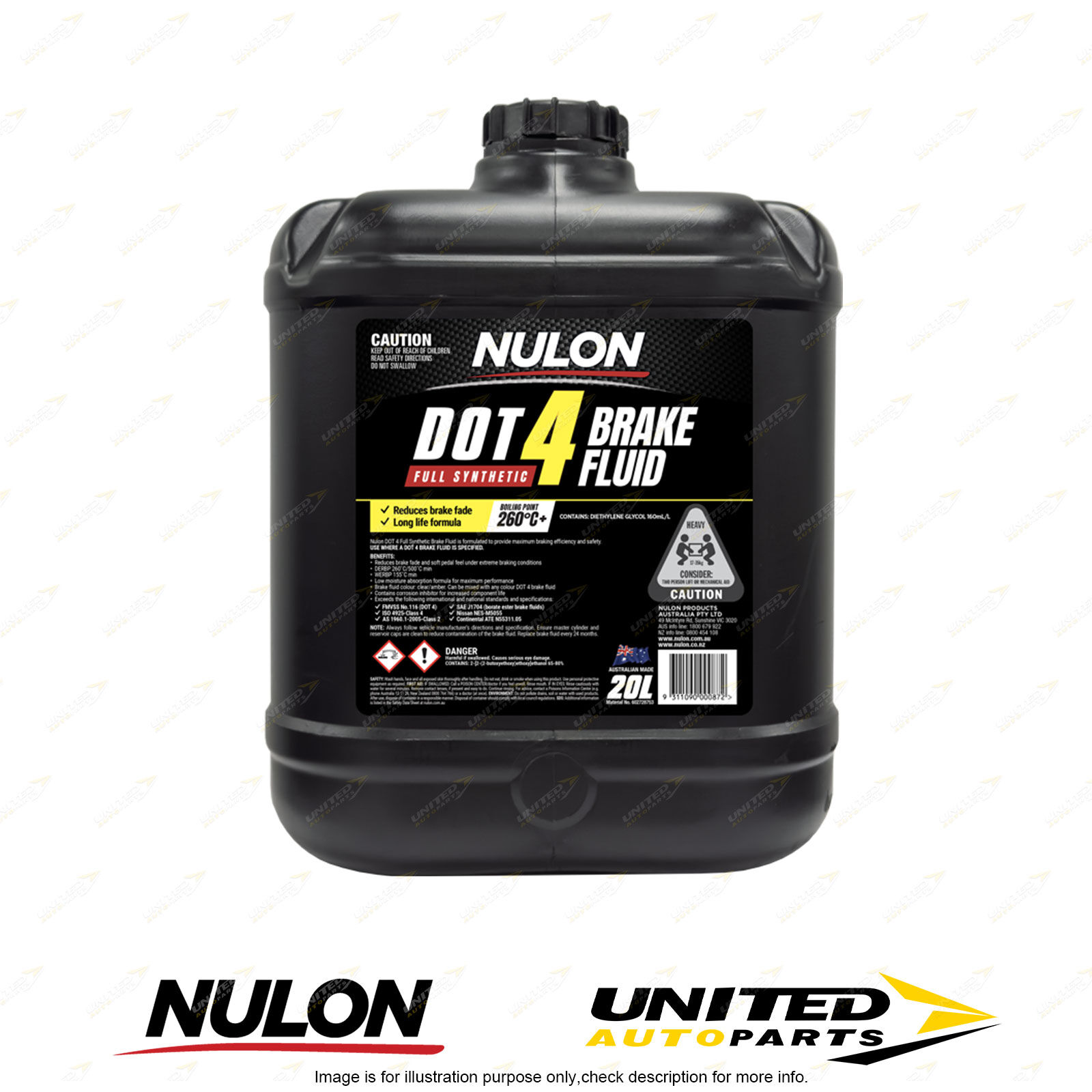 Nulon DOT 4 Full Synthetic Brake Fluid is formulated to provide maximum braking efficiency and safety. USE WHERE A DOT 4 BRAKE FLUID IS SPECIFIED.