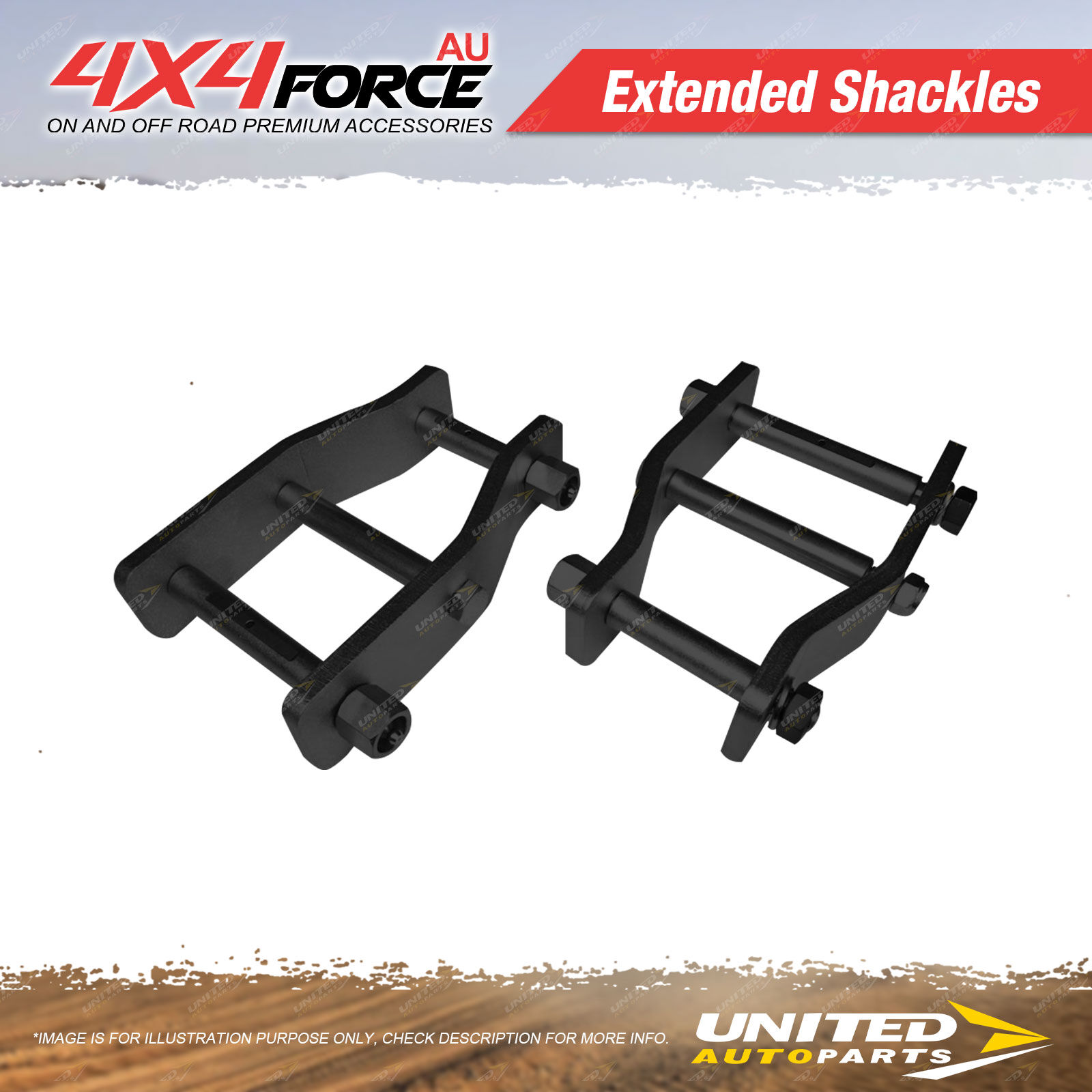 4X4FORCE Extended Shackles Are Engineered To The Highest Standard, With Factory Size Greasable Pin(To Allow Installation Of Factory Bushings) And 50mm Extended Plates.