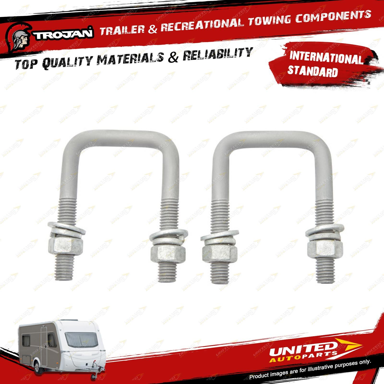 Pair Trojan U Bolts M12 X 51 SQ X 85 for Trailer Hardware Hinges Bolts Fasteners