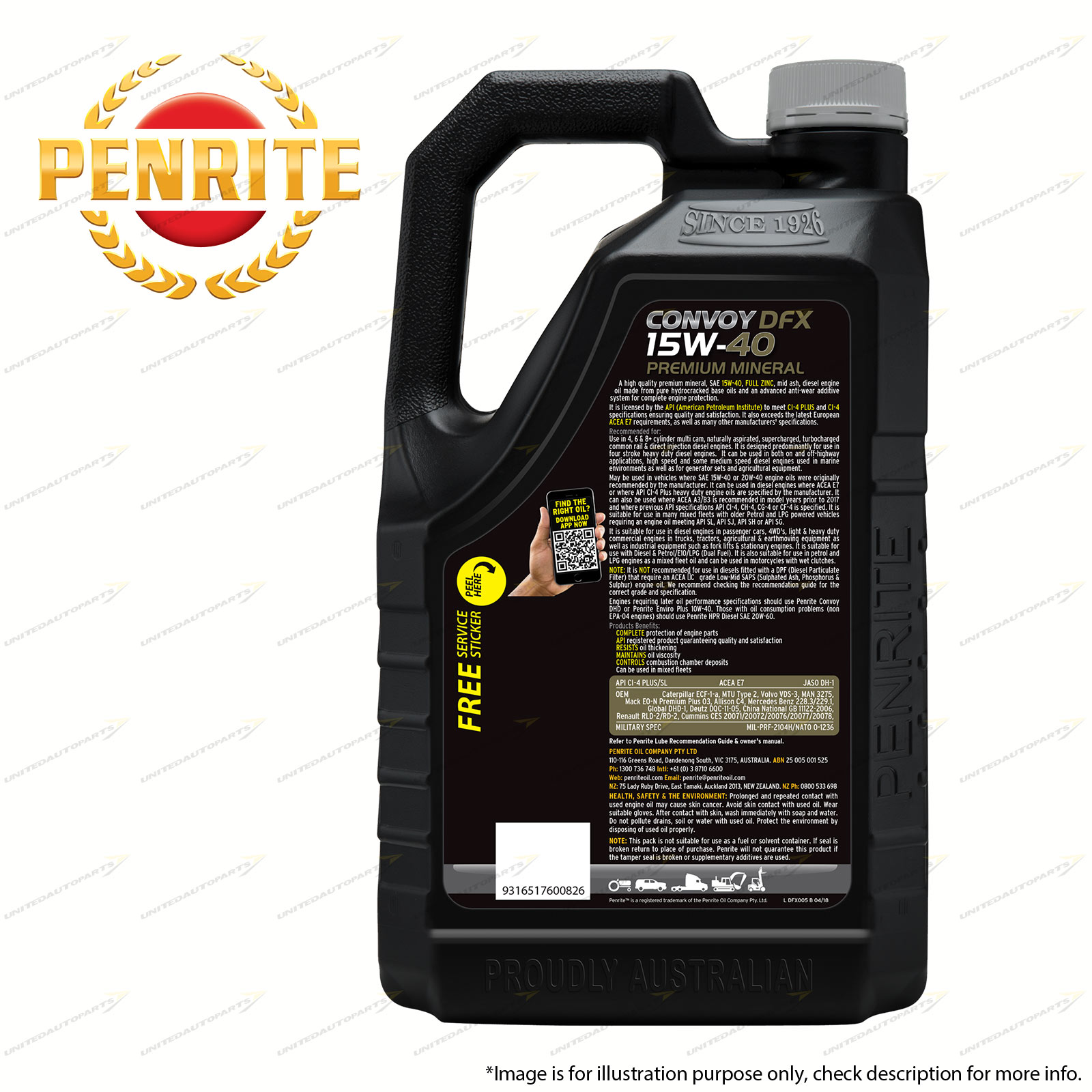 Penrite Convoy DFX 15W-40 Engine Oil 5L for Landcruiser 40 60 70 80 Prado KZJ95