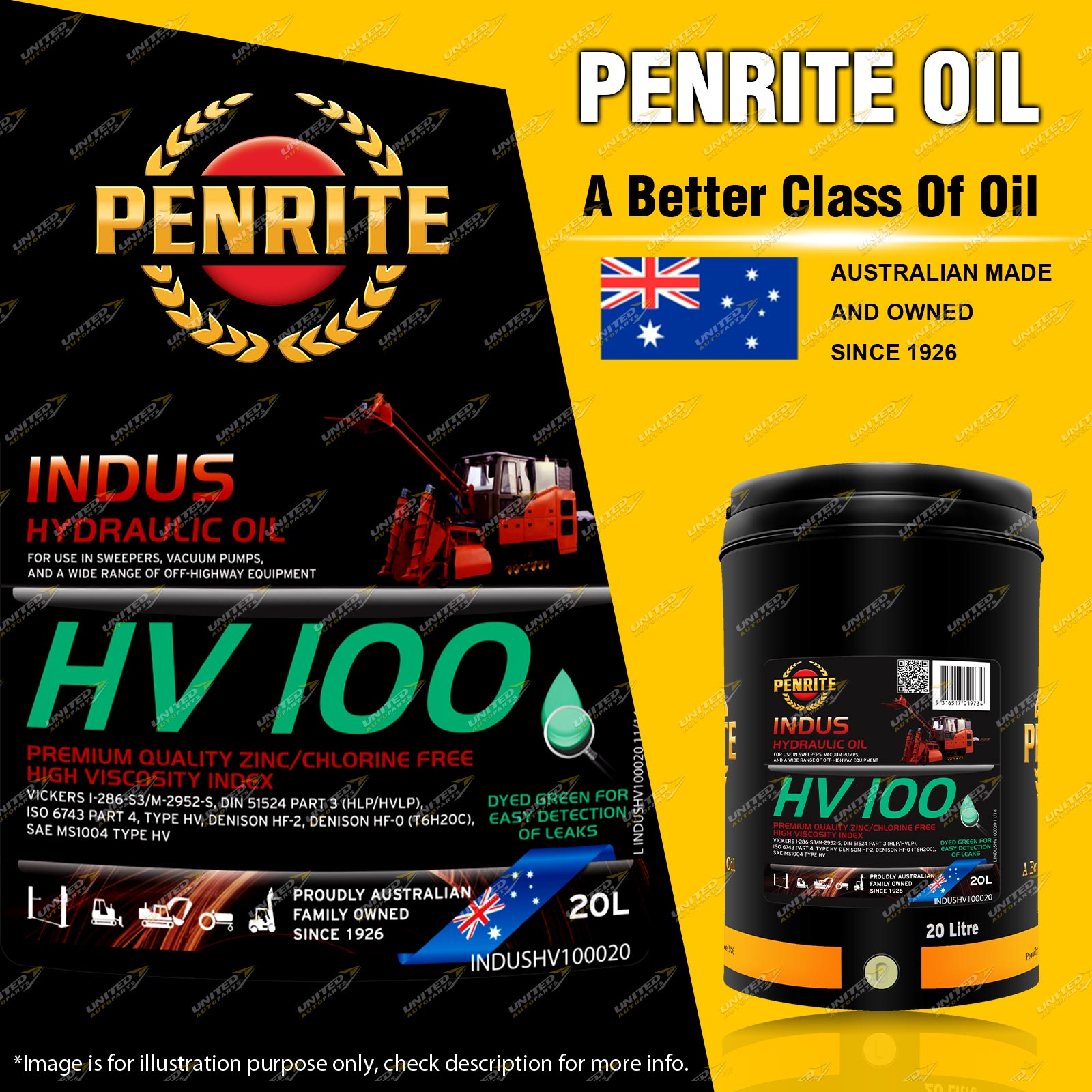 1 x Penrite Indus HV 100 Zinc Free High Viscosity Index hydraulic oil 20L
