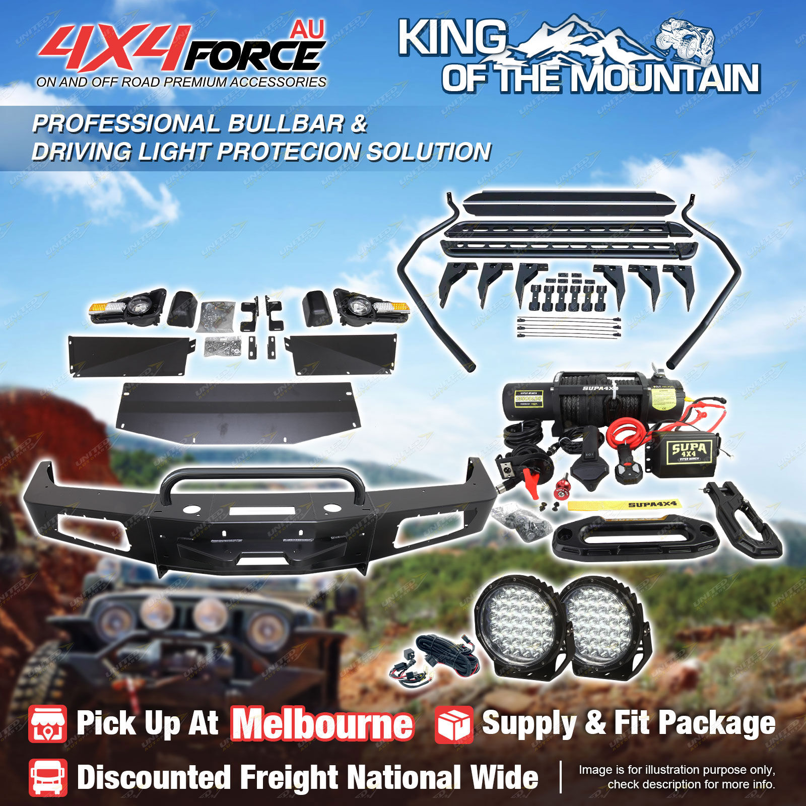 Safari Shield U Loop Bullbar Light Side Step Winch for Toyota Landcruiser 80 MEL