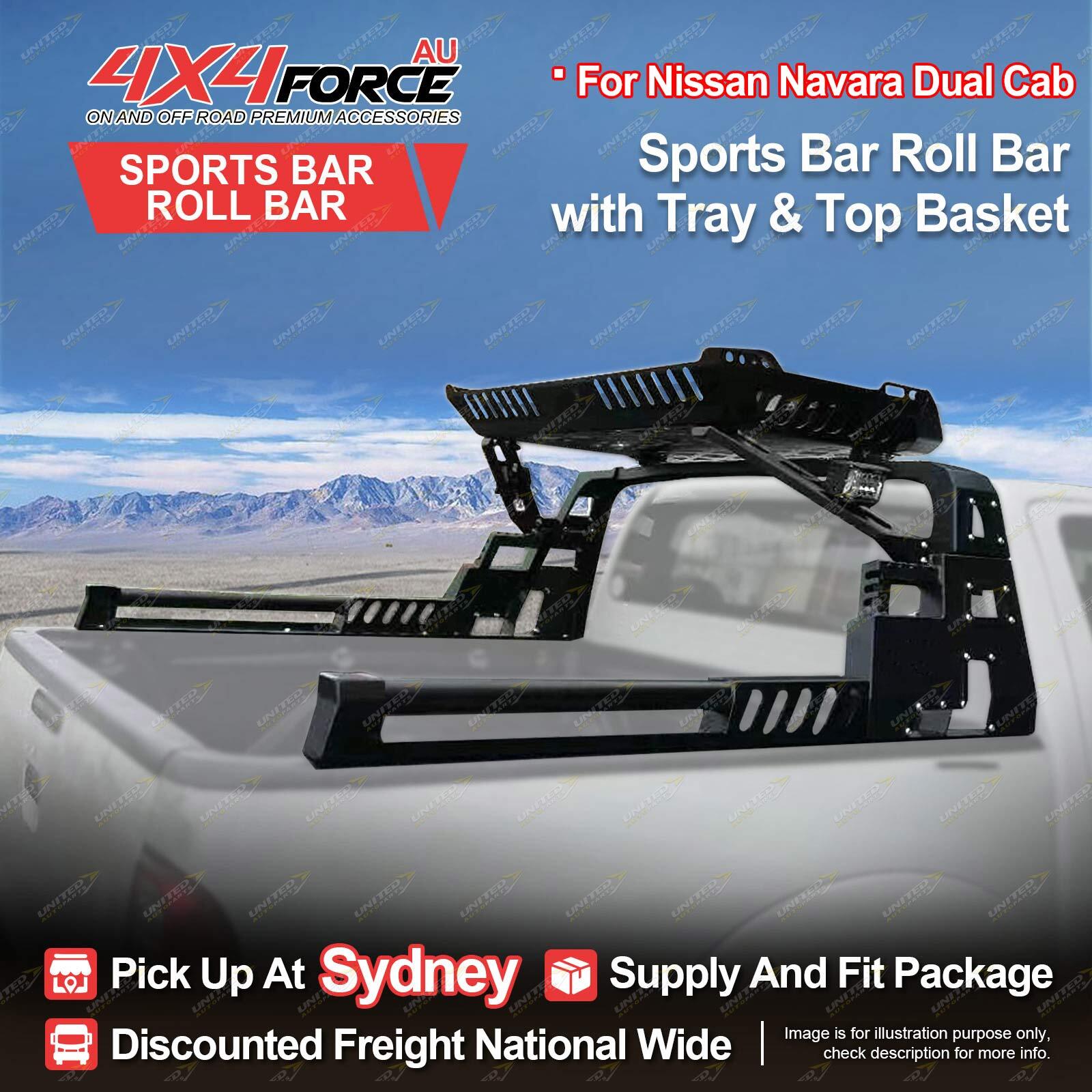 Sports Bar Roll Bar with Tray & Top Basket 4 LEDS for Nissan Navara Dual Cab SYD
