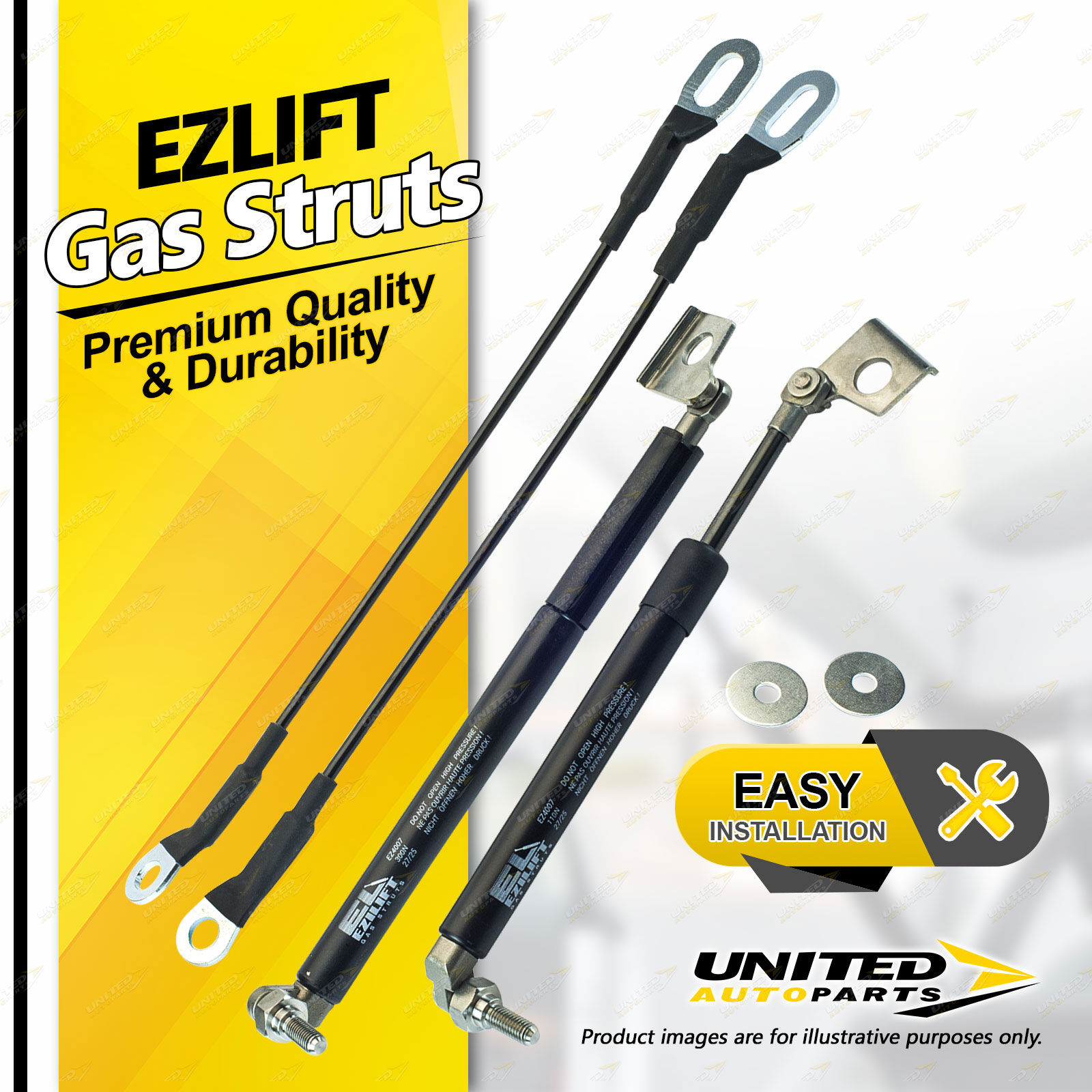 United Autoparts Gas Struts are the market' s premium replacement product.All products are 100% Tested, easy to fit with the use of simple hand tools and restore peace of mind and personal safety within minutes. |
