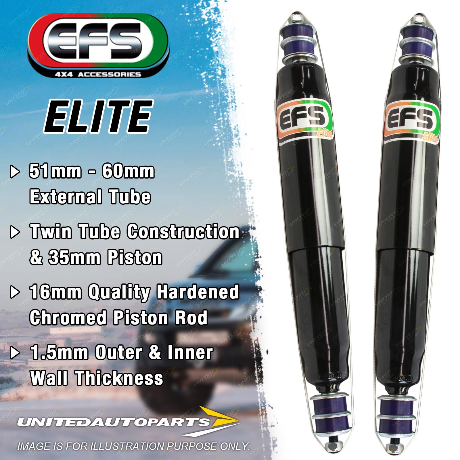 | The EFS Elite Shock Absorber Range is developed for the 4wd owner who only pursues the best for their 4wd. EFS is built with high quality Internal external components combined together to give you excellent performance and longevity. EFS shock absorbers are vehicle & height specific with valving developed to suit each vehicle. "Not a one shock suits all approach" | |