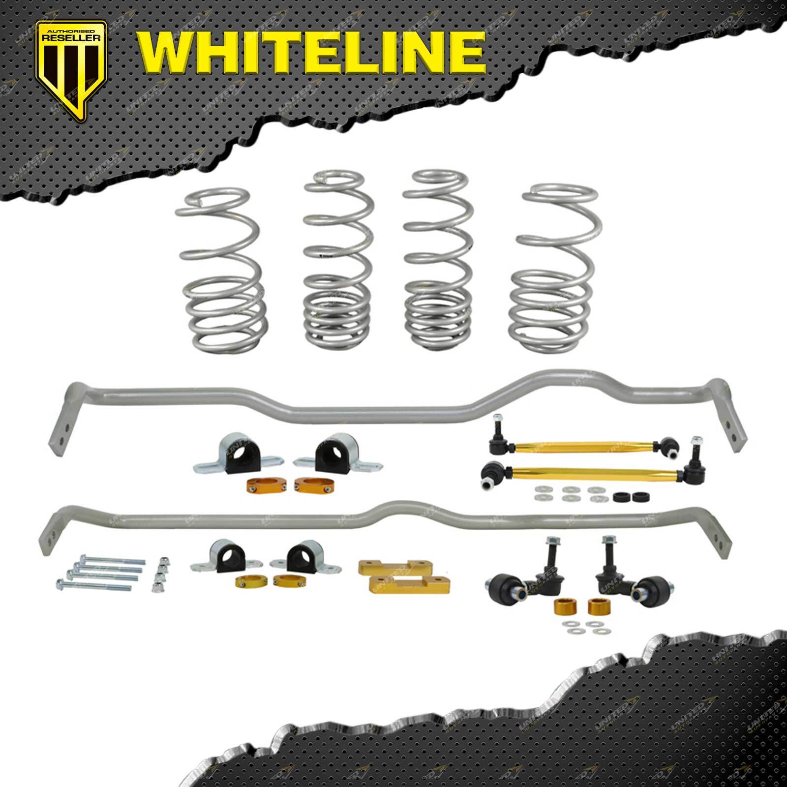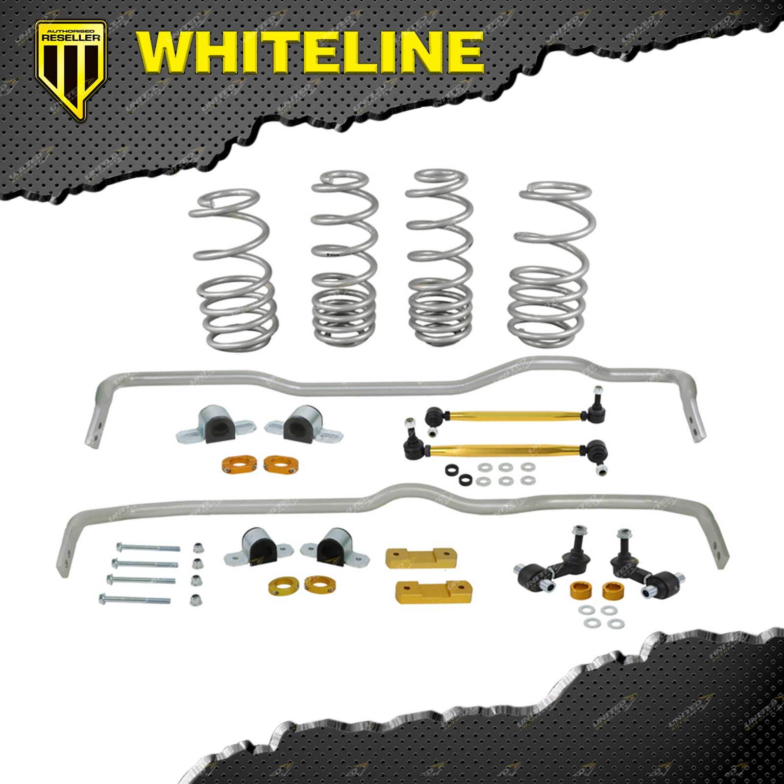 The ultimate entry level suspension upgrade! Performance, handling and comfort make up the Grip Series Stage 1 kit featuring Whiteline signature front and rear adjustable (where applicable) swaybars, drop links and performance lowering springs. Whiteline Springs deliver improved vehicle performance whilst maintaining safety and ride quality characteristics. This kit contains 4.1kg/mm (229lb/in) front rated springs that provide a 20mm drop while the 4.8kg/mm (269lb/in) rated rears deliver a desirable 20mm to the vehicle. Boasting a 26mm 2 point adjustable front sway bar and 24mm 2 point adjustable rear sway bar, the kit is completed with high quality sway bar links and mounting accessories that ensure optimum performance and ease of installation. Achieve perfect balance and precise tuning with this GS1 Kit. Features