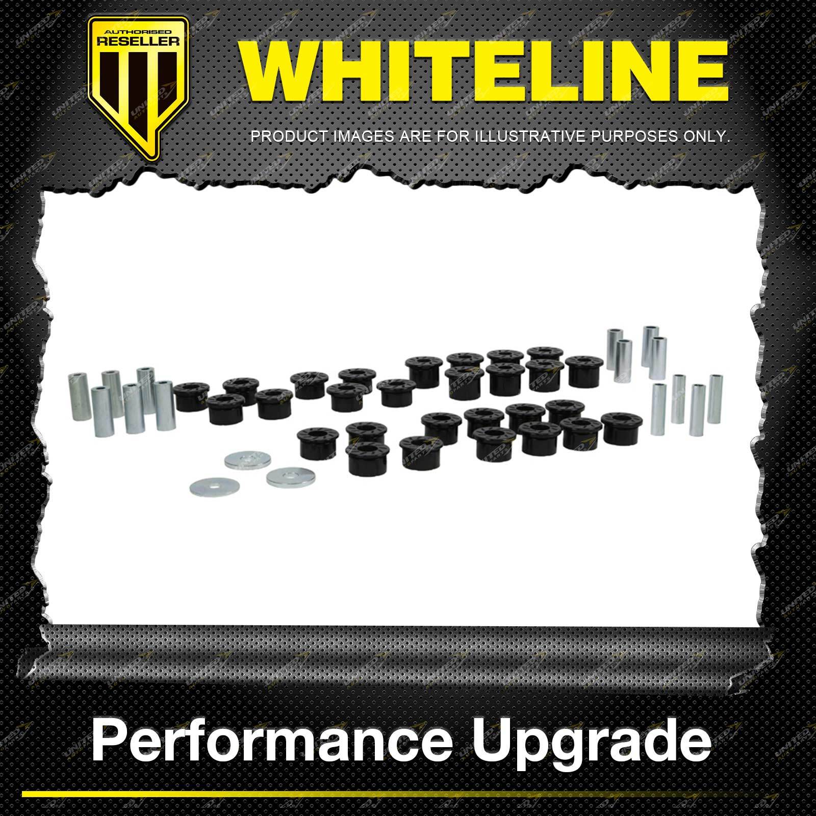 Whiteline Chassis Control Bushings Our engineered "Synthetic Elastomer" bushings feature the quality ride of rubber at lower speeds and at higher speeds react when under cornering, accelerating and braking loads, for CHASSIS CONTROL and improved handling. No compromise - Advanced designs, material technologies and extensive testing ensures minimal effects on ride quality and maximum effects on handling precision. Unique design and material technology for improved articulation, performance, vibration and noise dampening! Whiteline bushings deliver precision handling when you need it with uncompromised ride quality! The advanced synthetic elastomer characteristics ensure superior elasticity, memory and outright durability for all forms of driving applications! Benefits :