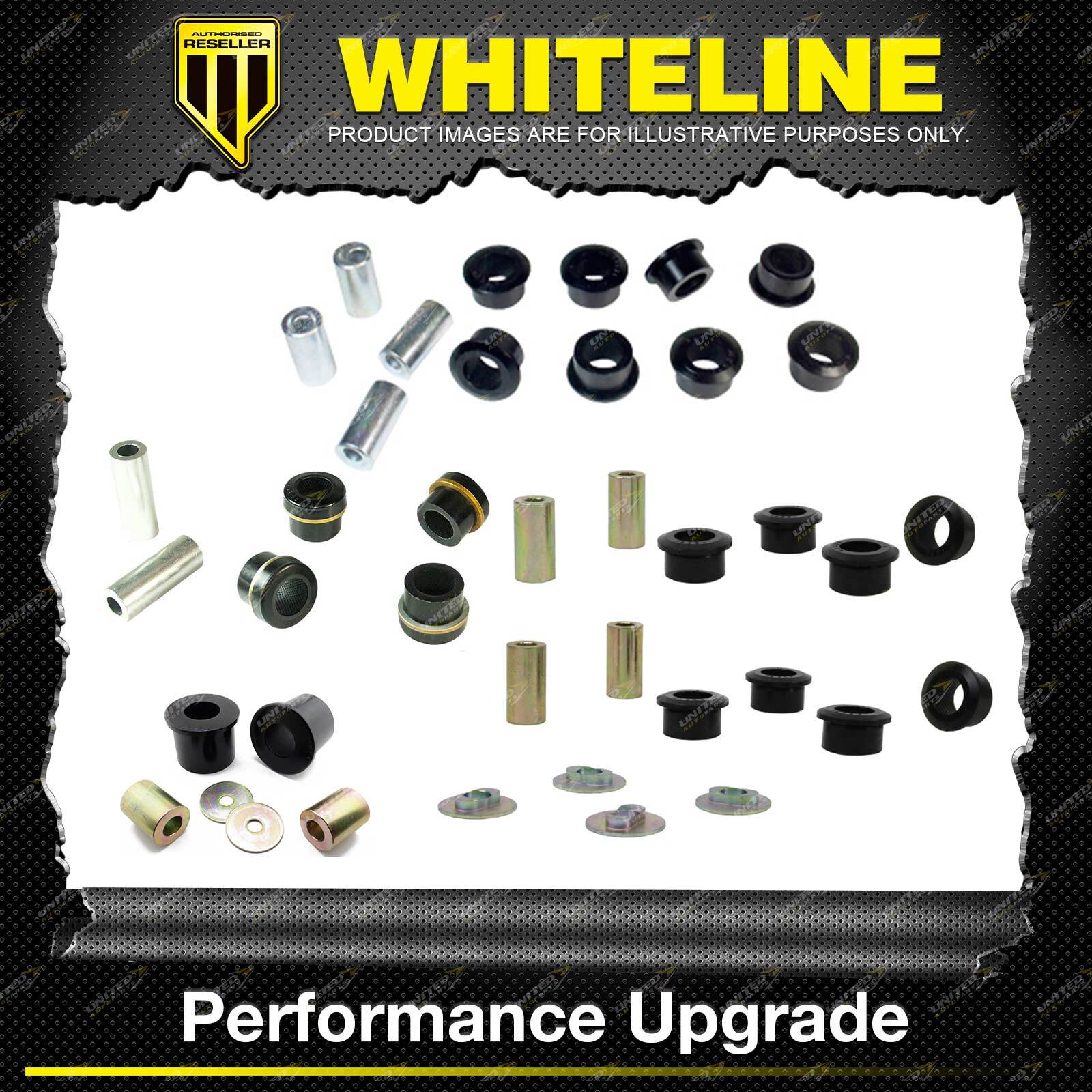 Whiteline Chassis Control Bushings Our engineered "Synthetic Elastomer: bushings feature the quality ride of rubber at lower speeds and at higher speeds react when under cornering, accelerating and braking loads, for CHASSIS CONTROL and improved handling. No Compromise - Advanced designs, material technologies and extensive testing ensures minimal effects on ride quality and maximum effects on handling precision. Unique design and material technology for improved articulation, performance, vibration and noise dampening! Whiteline bushings deliver precision handling when you need it with uncompromised ride quality! The advanced synthetic elastomer characteristics ensure superior elasticity, memory and outright durability for all forms of driving applications! Benefits :