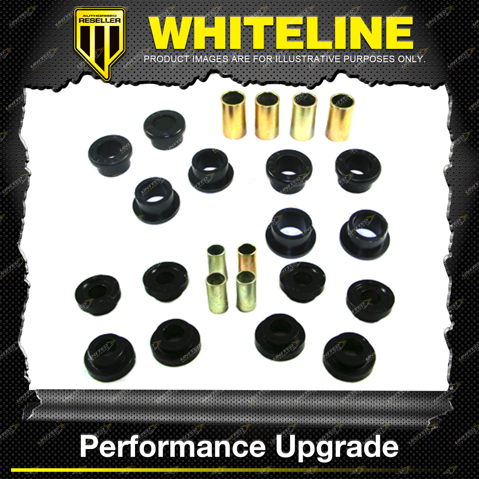 Content : Whiteline Front Control Arm Lower Upper Bush Kit Kit Include : Whiteline Front Control Arm - Lower Inner Bushing Whiteline Front Control Arm - Upper Bushing Suit :
