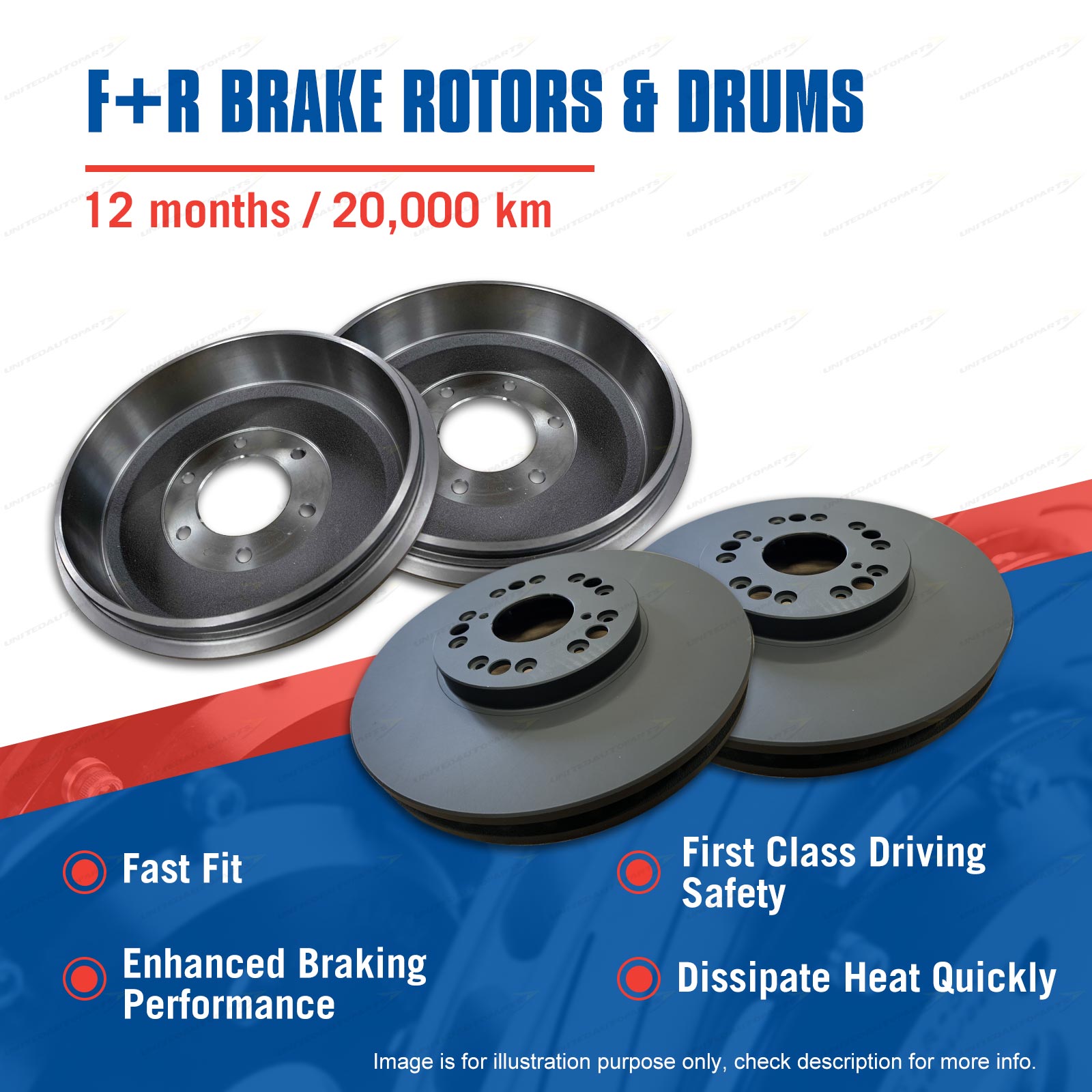 Contents : 2PCS RDA Disc Brake Rotors + 2PCS RDA Brake Drums